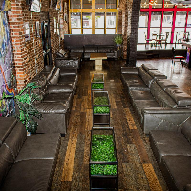 Kid-friendliness: Kids were able to walk around look at the art and sit on the sofas watch the soccer games.